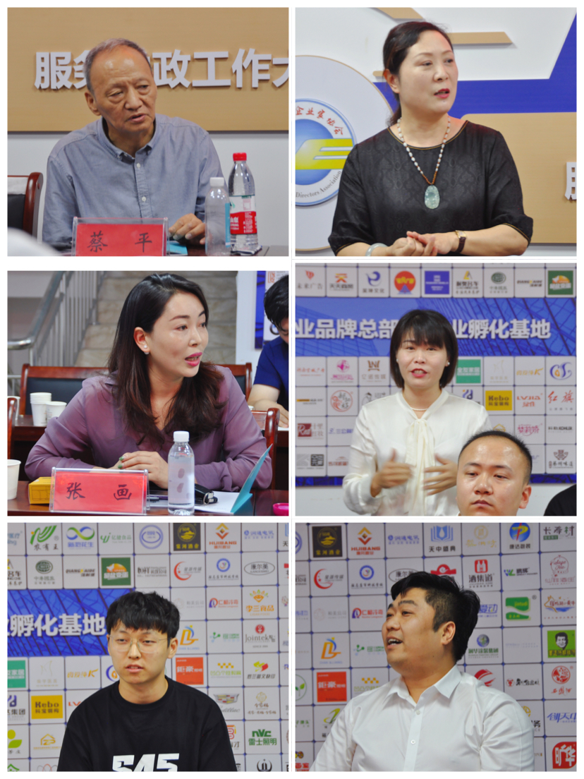 参观结束后,大家在企业品牌产品展示中心二楼会议室进行了座谈交流。状元鸿粥餐饮连锁王提、小猪配菜创始人赵子路、河南康康食品有限公司康叶茂、元化集团张珂嘉、企业品牌产品展示中心主任李锋等分别结合各自专业领域和创业经历,围绕企业创新、技术创新、服务模式、市场应用等话题进行了精彩而又务实的分享。
