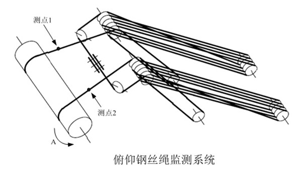 俯仰钢丝绳系统共布置了2个测点,示意图如下: