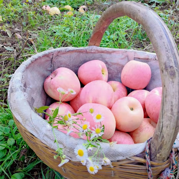 除了美味的烧烤,还有收获了一筐筐红彤彤的苹果。